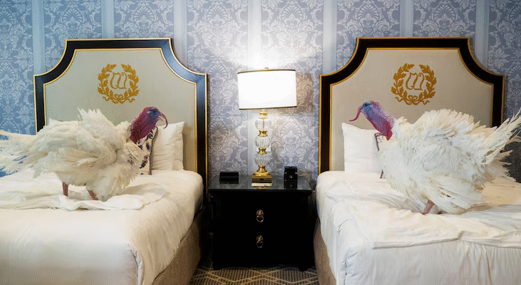 Two very lucky birds won the White House lottery this year — a presidential pardon and a lifetime free from the Thanksgiving dinner table.